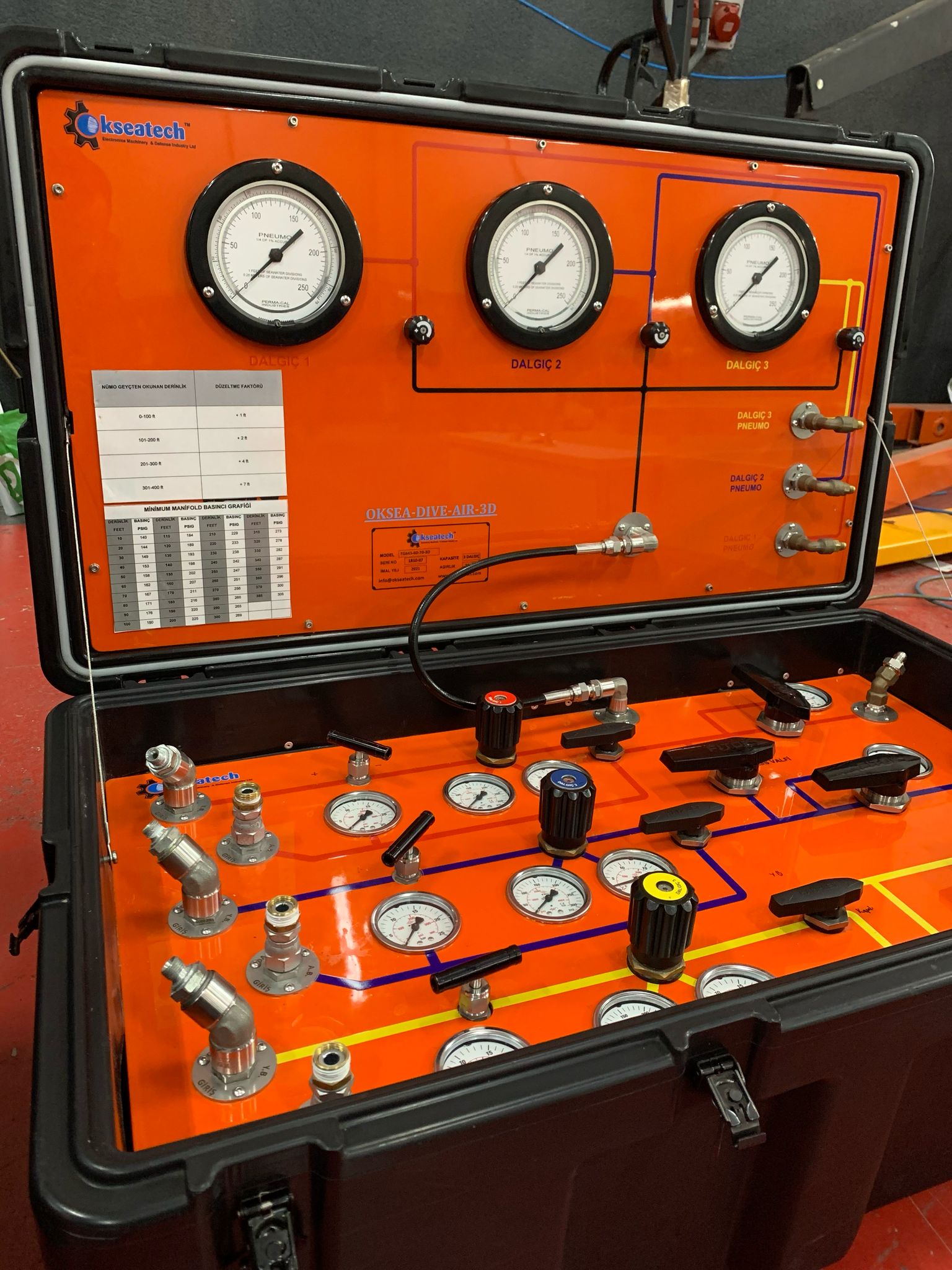 Okseatech 3 Diver Modular Air Diving Panels are designed to independently supply breathing air for 1, 2 or 3 divers. It is fully equipped with O2 analyzers, flow meters and depth gauges so the operator has full access to all equipment needed to ensure a safe dive.